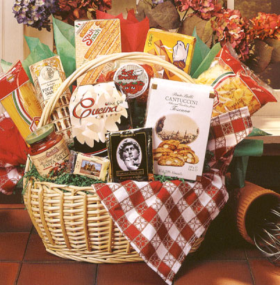 From Italy, where food is a passion! Our exquisite selection of old world favorites celebrates this passion in grand style. Includes imported Italian pasta, sauce, sun dried tomatoes, biscotti, gourmet coffee and other traditional Italian specialties. Delicioso! (Large Shown)